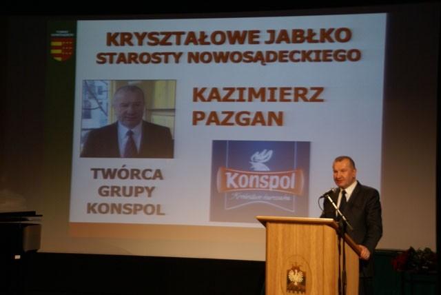 Podczas Gali Przedsiębiorczości „Sądecki Lider Biznesu”, Starostwo Powiatowe w Nowym Sączu uhonorowało Kazimierza Pazgana, założyciela Grupy KONSPOL, Kryształowym Jabłkiem za jego wkład w rozwój przedsiębiorczości i lokalnego rynku pracy. Starosta Jan Golonka zaznaczył, że nagroda należy się Pazganowi zarówno za osiągnięcia biznesowe, jak i za promocję przedsiębiorczości w regionie. Oprócz Kryształowego Jabłka, wręczono także Nagrodę Starosty Nowosądeckiego dla Najlepszego Pracodawcy 2012 Roku, którą zdobyła firma NOVITUS, lider w dostarczaniu rozwiązań technologicznych dla handlu.