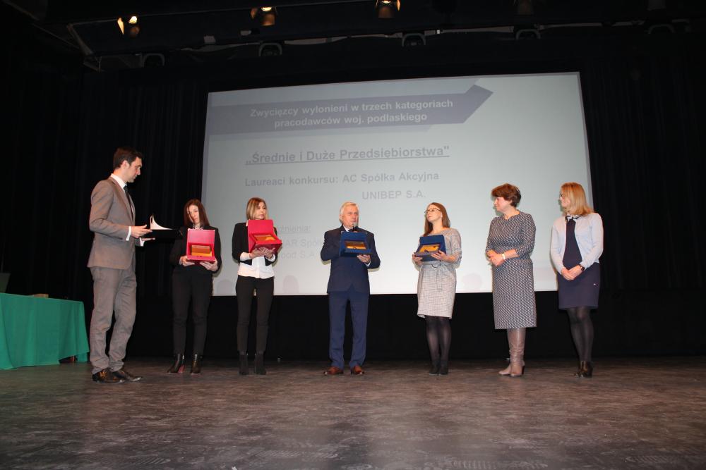 Zwycięzcy wyłonieni w trzech kategoriach pracodawców woj. podlaskiego otrzymali nagrody wręczone przez Organizatorów konkursu:
